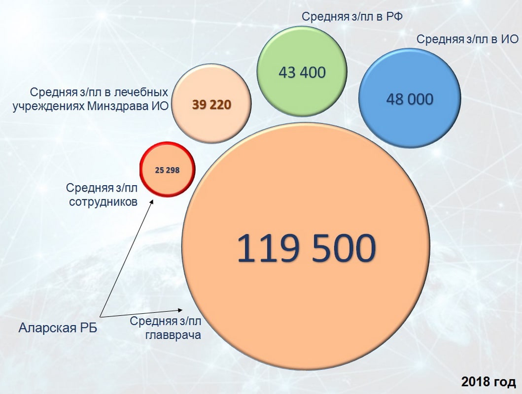 Эксперты поделились любопытным наблюдением. Одну из самых низких заработных плат получают работники Аларской районной больницы. В среднем в месяц у них получается чуть больше 25 тысяч рублей за те же 1,5–2 ставки. Зато у главного врача с доходами всё в порядке. Его ежемесячный доход достигает 120 тысяч рублей.