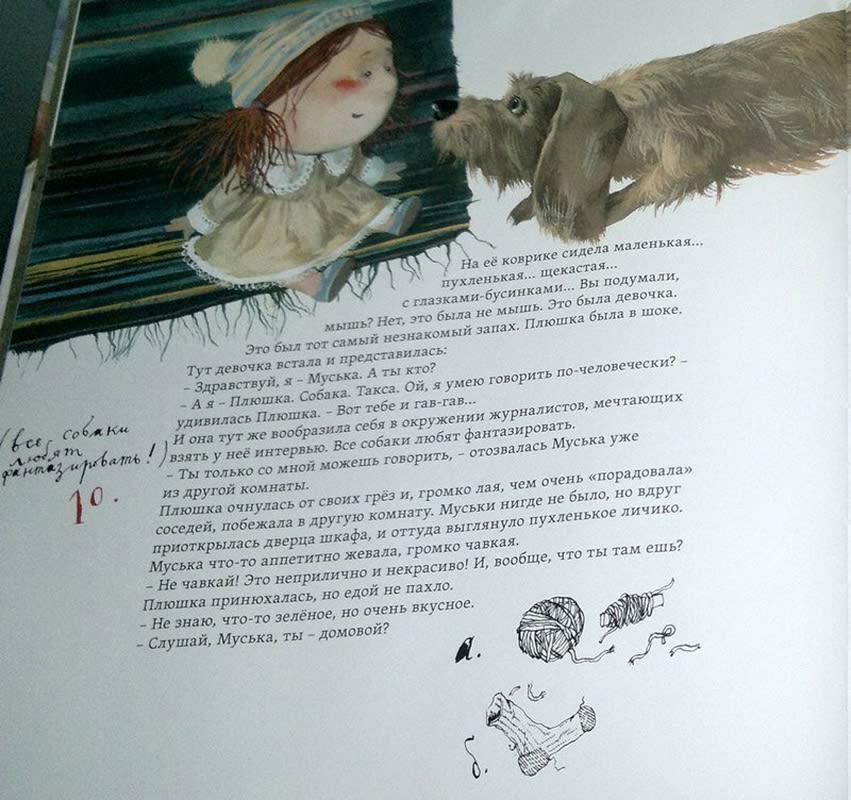 – Да, очень много. Если я делаю книжку, я люблю посидеть, покопаться в себе. Иногда что-то записываю, что-то рисую. Надо вспоминать себя, что-то о себе… Что тебя лично тронуло в той истории, которую ты иллюстрируешь. И что ты готов рассказать из своей жизни на ту же тему. Это самое интересное, потому что рисовать корову, стул, стол может любой, этим ты никого не зацепишь. Интересны именно твоё отношение, твои личные переживания. У Бодлера один раз спросили, что такое гениальность, он ответил: «Способность быть в контакте со своими детскими эмоциями». Ни больше ни меньше. Мне сложно быть с ними в контакте, но я стараюсь, по крайней мере. Я делаю это, когда у меня есть время, когда текст резонирует во мне. Я люблю покопаться в себе. Чем больше я вложусь в картинку, тем больше она будет трогать меня самого и окружающих. И вложиться нужно не столько рабочим временем, сколько своими переживаниями. Это очень сложно: найти, чем ты можешь поделиться, а потом разбить это на 14 или 20 картинок. Придумать их, найти нужную технику. И они не могут быть отдельными, в них должен быть ритм, как в языке, потому что рисунок, серия рисунков – это визуальный язык.