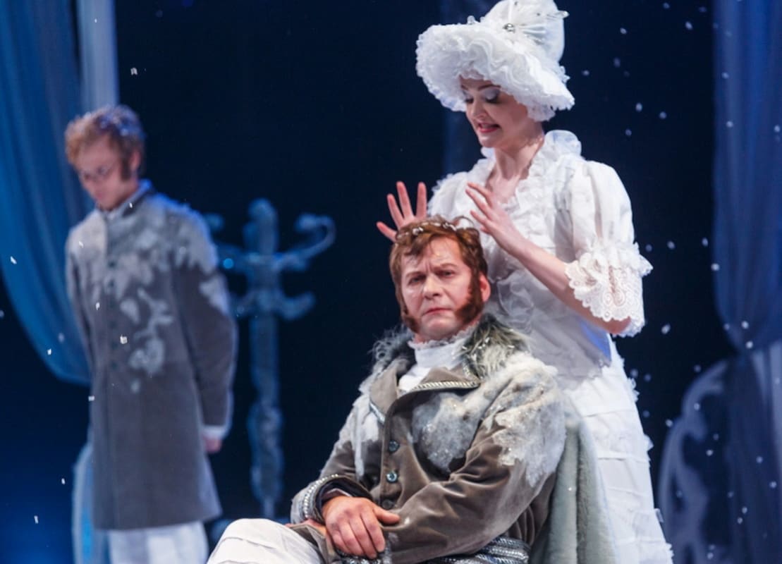 Сцена спектакля являет зрителям комедию всеобщим замораживанием (художник-постановщик – заслуженный деятель искусств России Александр Плинт): лёд покрывает и микрозанавес, и часы в доме Фамусова, плавно переходит в постоянно идущий снег по всему пространству сцены, засыпая дом и артистов спектакля. Так возникает первая ассоциация: ничто с годами не изменилось в России – холод в людских отношениях, «вечная зима» в российской государственности. Заявка режиссёра-постановщика Станислава Мальцева смелая, хотя и не бесспорная. А дальше эта идея подкрепляется одинаковыми по цвету и по смыслу костюмами художника Оксаны Готовской – в них отсутствует социальная принадлежность персонажей: мужчины одеты в некое подобие халатов, а женщины – в платья, напоминающие женские ночные рубашки одного цвета и одного покроя.