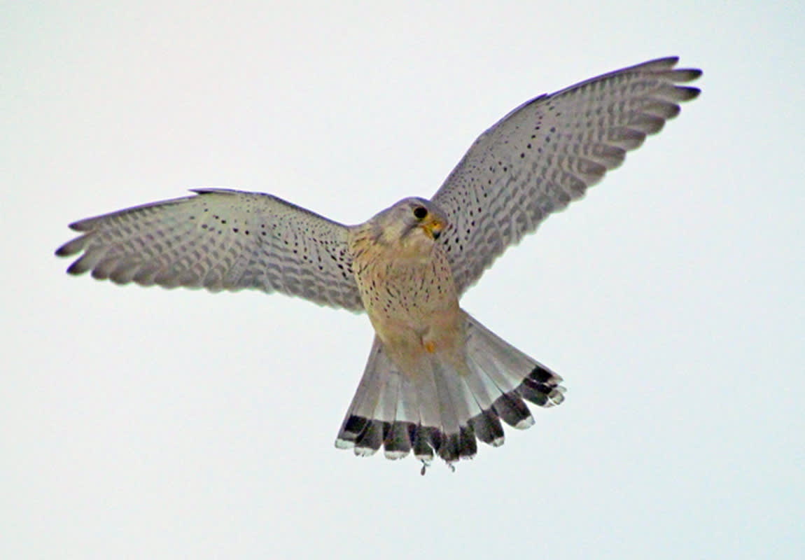 К этому времени стало заметно смеркаться, и я собрался идти домой. Вдруг вижу не очень далеко, между рекой и стоящими вдоль берега домами-высотками, как раз над заснеженной дорогой птица в воздухе на одном месте крыльями быстро-быстро трепещет. Неужели пустельга? Дело в том, что для пустельги так называемый «трепещущий полёт» во время охоты – явление типичное. По-научному это даже не трепет, а, как вычитал я в Интернете, «высокоспециализированная форма управляемого полёта, при которой сокол, высматривая добычу, долгое время «висит» над определённой точкой, совершая очень частые взмахи крыльями».