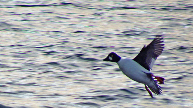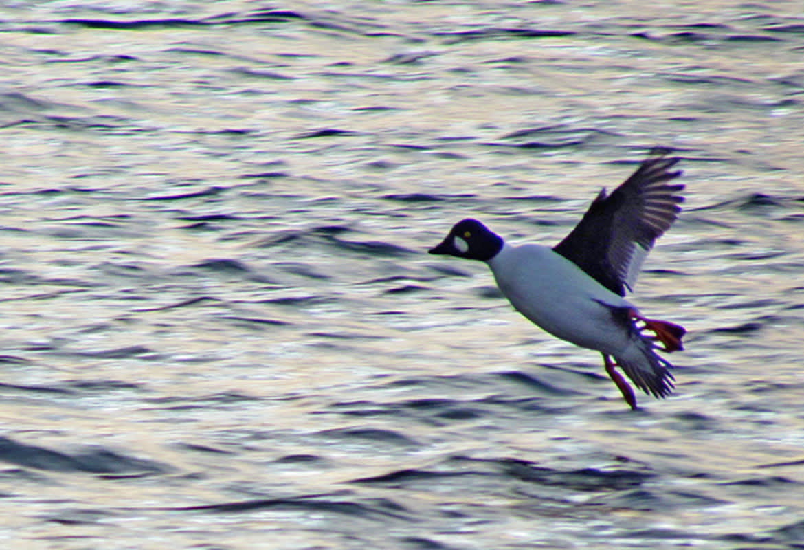 Окончательно рассердившись, встал я резко с колен, а гоголь от неожиданности аж подпрыгнул и взлетел, вместо того чтобы привычно под воду спрятаться. Вот тут-то я его и снял. Влёт. Вместе с белой щекой и золотым глазом, главными внешними признаками отличия от остальных видов семейства утиного.