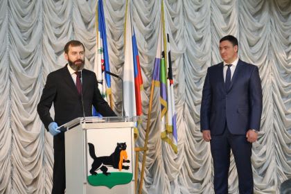 Сегодня в Иркутске состоялась инаугурация мэра, которым на 12-м заседании городской Думы был избран Руслан Болотов. С вступлением в должность нового мэра поздравил председатель Законодательного Собрания Иркутской области Александр Ведерников.