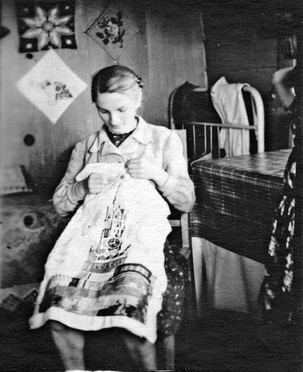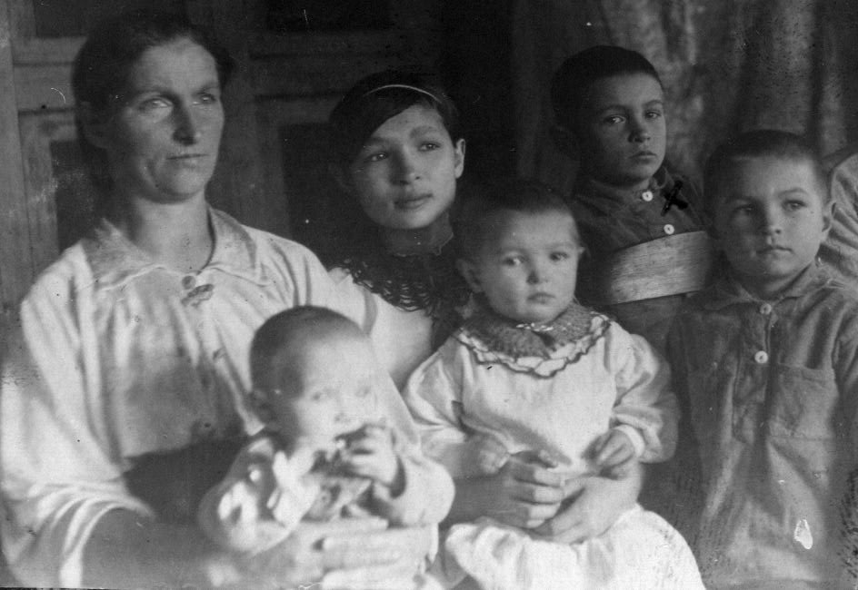 Когда мы переезжали, мне не было и четырёх лет. На телегу погрузили весь скарб, в телеге ехали мама, сестра, которой было шесть лет, я и младшая, трёхмесячная, сестрёнка. К телеге была привязана корова, пешком шли папа и два старших брата, им было 12 и 9 лет. Я не знаю, сколько мы ехали, наверное, дней семь. Думаю, что переезд был непростой. Воспоминаний доольхонского детства у меня не осталось, но родители рассказывают, что после того, как все поели, я залезала под стол. Меня спрашивали: «А что ты под столом делаешь?» Я отвечала: «Ищу хоть крошечку хлеба». Папа рассказывал, что в те годы из-за голода был таким худым, что позвонки на спине выпирали и были похожи на пилу.