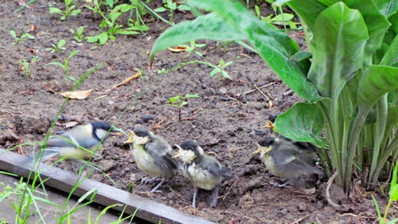На террасе под крышей сухо. Это вроде и хорошо. Но любопытной детворе скучно. Поэтому, несмотря на протесты родителей, все шестеро скоро перебрались в мокрую траву, прямо под холодный дождь. Поначалу разбрелись кто куда, но скоро сгруппировались под старым кустом медуницы. А самый резвый умудрился вспорхнуть на растущую здесь же яблоньку. Оттуда, промокший до последнего пёрышка, сидя среди мокрых листьев, и кричал родителям громче всех: «Есть хочу!» И ему перепадало пищи, пожалуй, чуть больше, чем остальным. Уж он-то наверняка выживет. Эволюция таких любит.