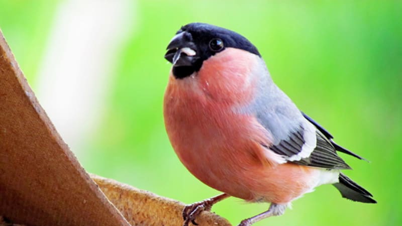 К моей радости и к удовольствию снегиря, кормушка оказалась заправленной. Как раз в то утро внучка просто так, из интереса, насыпала в неё семечек.