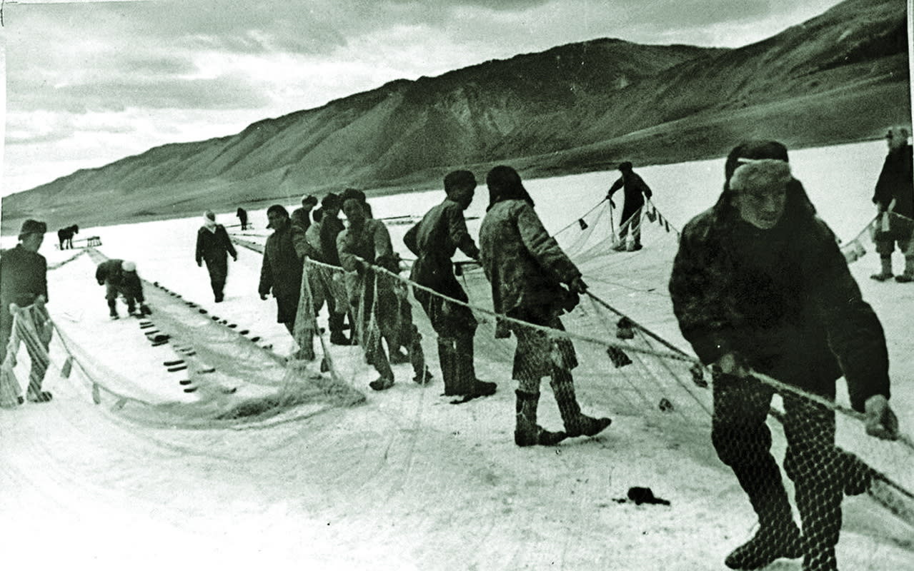 – Во время войны рыбу «пластали», солили и укладывали в бочки по 2–2,5 центнера. Женщины работали на длинных скамейках, рядом стояли деревянные ушата, вёдра, куда сбрасывались внутренности рыбы. Как только ведро наполнялось, его несли в «жиротопку» – цех, где топили жиры, нерпичий и рыбный. Затем эти жиры отправляли в госпитали в город Иркутск для раненых бойцов.
