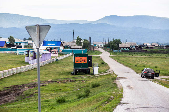 На основном въезде в Шулуты стоит тёмно-зелёный вагончик на колёсах, на нём двухметровая растяжка красного цвета с надписью «Карантин». Это санитарно-эпидемиологический пост. Его задача – не пропускать в деревню никого, кроме медиков, поставщиков продуктов для местного магазина, сотрудников администрации по специальным пропусками.