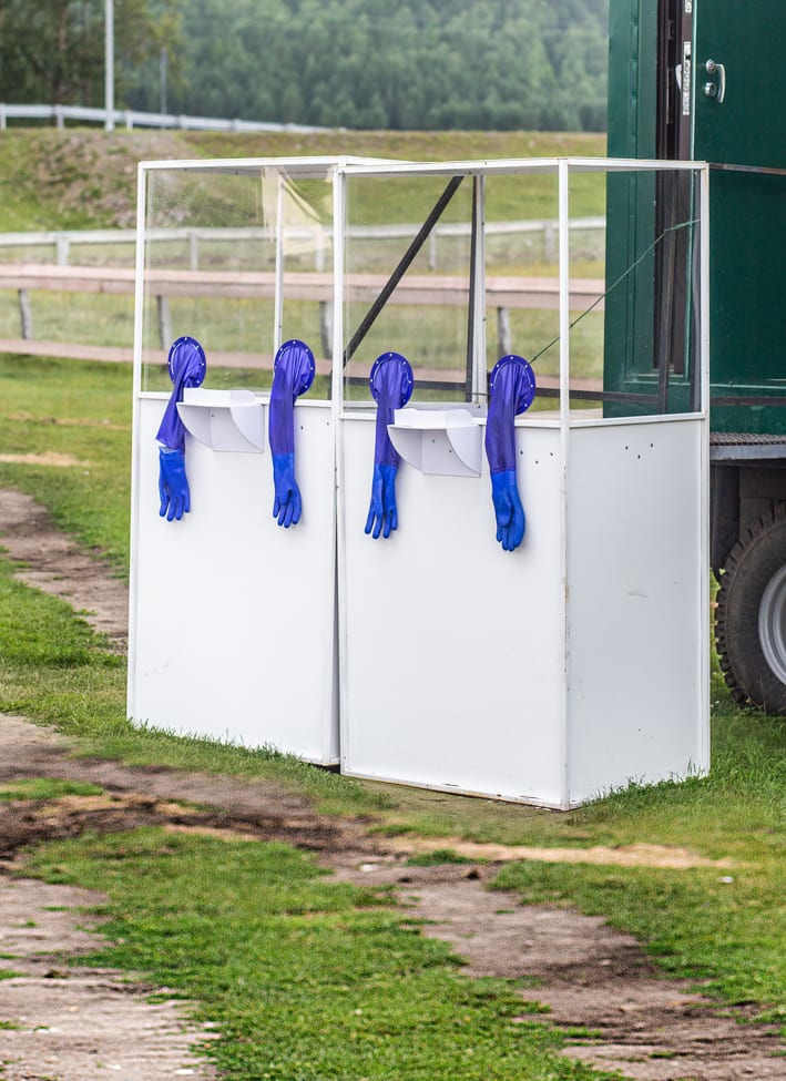 На улице около входа стоят две двухметровые кабинки Роспотребнадзора. Нижняя часть кабинок из белого пластика, верхняя – из прозрачного стекла. В стекле два круглых отверстия, снаружи к ним крепятся полуметровые синие перчатки из плотного латекса. Анжела и Дарья точно не знают, для чего нужна стойка с перчатками.