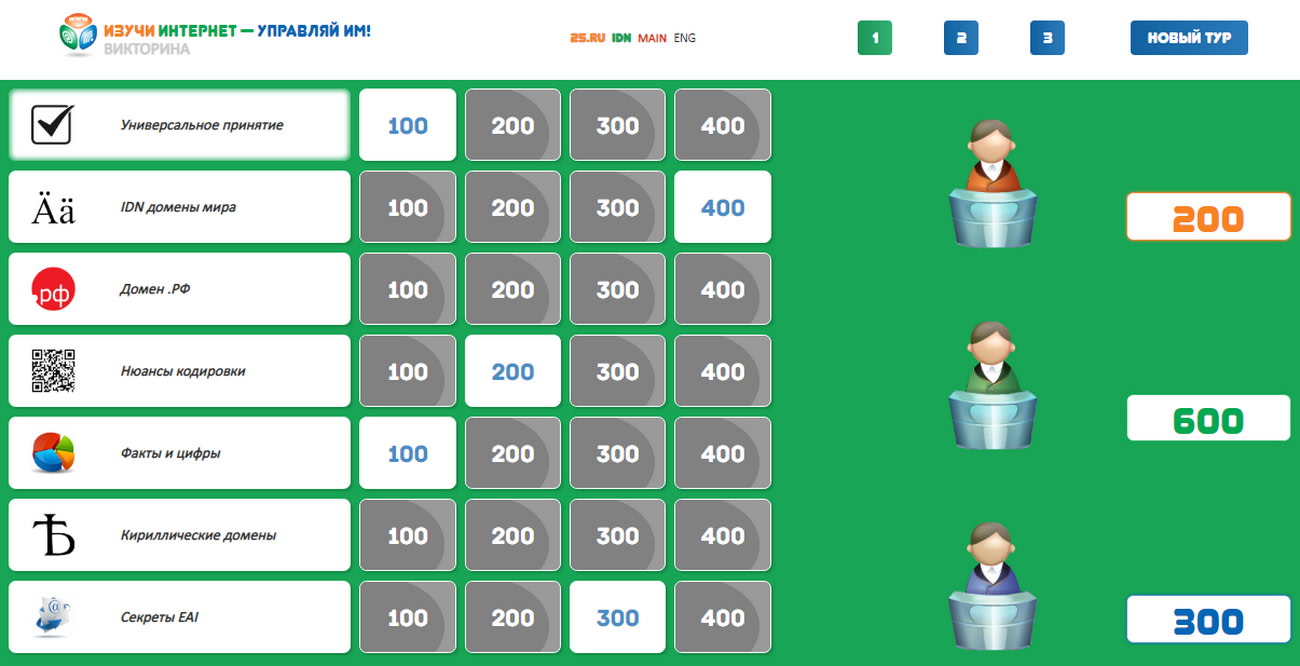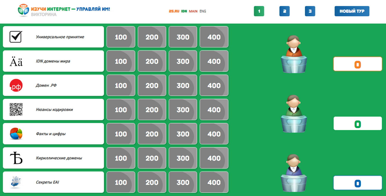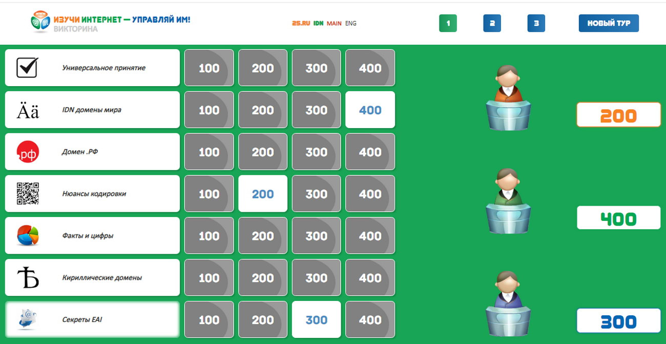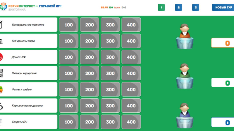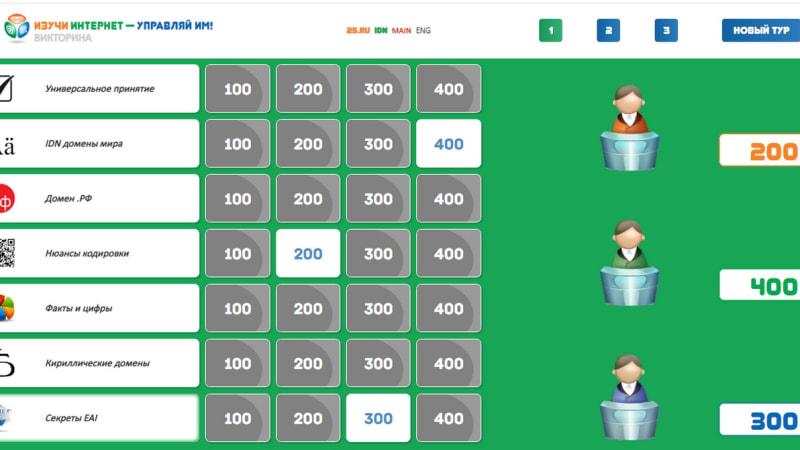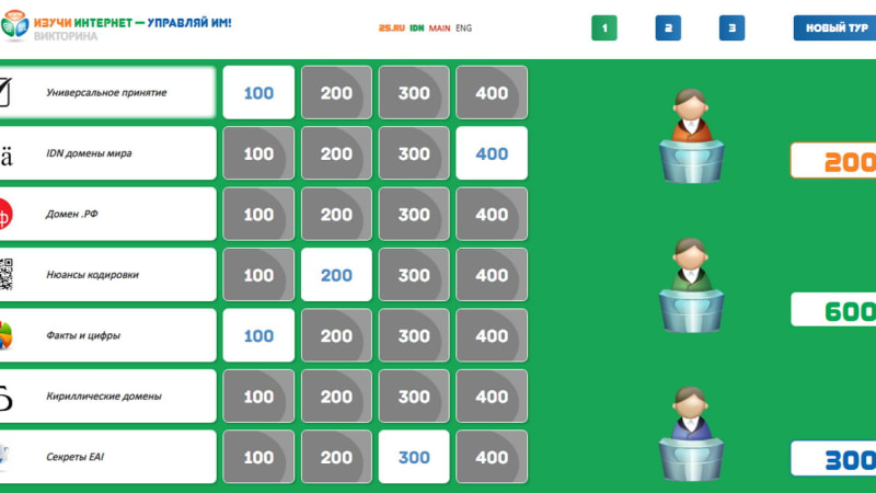 Часть вопросов нового раздела викторины связана с национальным кириллическим доменом России .РФ, который в этом году отмечает десятилетие. Игрокам предстоит ответить, регистрация каких доменных имен запрещена в .РФ, можно ли использовать в доменах .РФ букву «ё» и регистрировать односимвольные адреса, для каких целей чаще всего используются доменные имена .РФ и на многие другие вопросы.