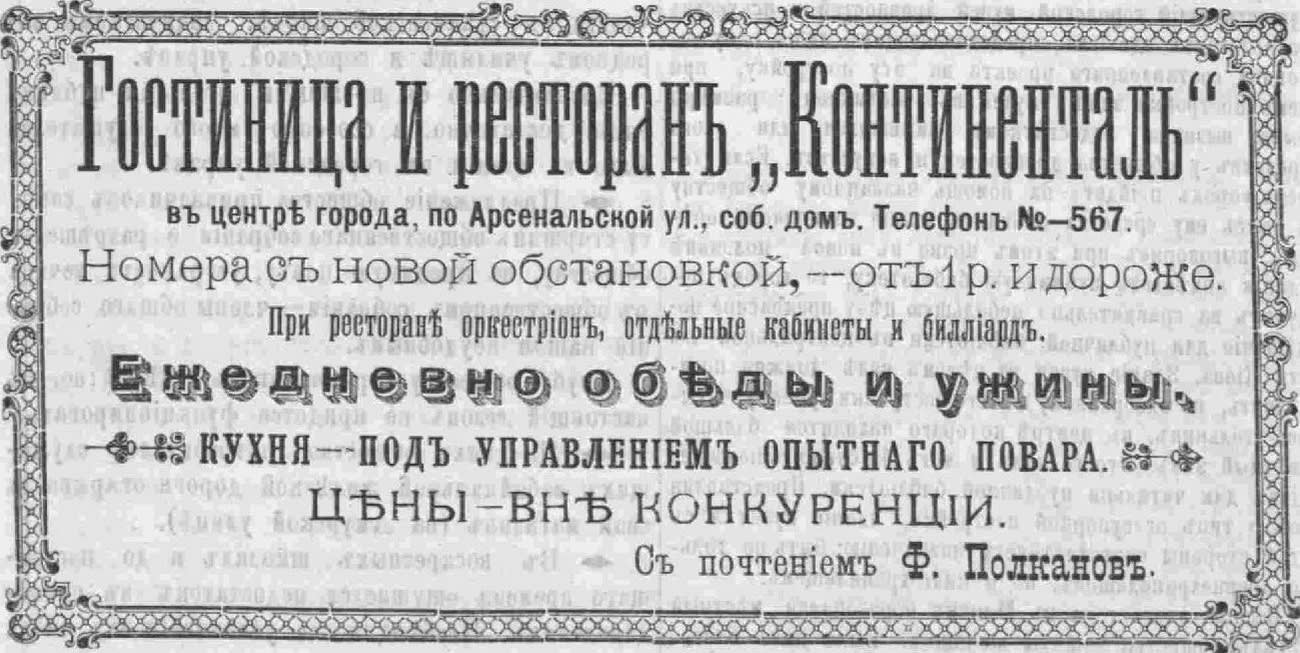 Предприятие приносило семье Полкановых немалые деньги. В 1906 году стоимость их имущества оценивалась в 20 тысяч рублей. К этому времени Фёдор Михайлович, который поначалу сам заведовал гостиницей и рестораном, стал нанимать управляющих. Он также приступил к расширению бизнеса: в одном из двух домовладений, купленных в 1907 году у мещан Адриана и Матрёны Шипицыных, были открыты номера для приезжих. Благо, что здание располагалось совсем рядом с «Континенталем». Во втором владении – усадьбе на Ланинской (или Декабрьских Событий), состоявшей из жилого дома, флигеля и служб, – Полкановы поселились.