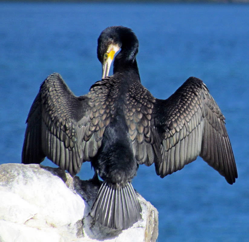 Беда большого баклана отчасти заключается в том, что птица эта очень компанейская. Иногда бывает, конечно, что пара строит себе гнездо где-то в уединении и живёт отшельниками. Но это исключение из правил. Большинству из этих птиц интереснее жить в компании. И чем больше компания – тем интереснее. Чтобы гнёзда – рядышком. Чтобы строем и на кормёжку, и на отдых, и даже на какие-то непонятные, не разгаданные мной коллективные занятия.