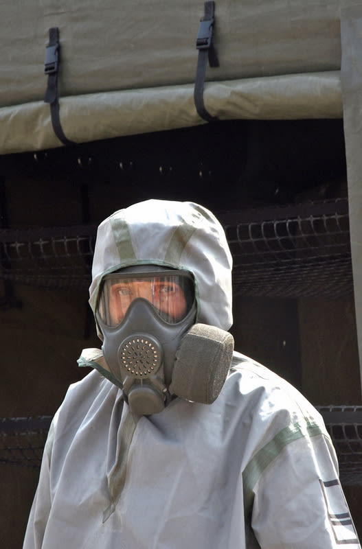 Подготовка к работам на промышленной площадке началась несколько раньше. Подразделение войск РХБЗ, которому предстояло провести химическую разведку на ней, прибыло в город 23 июня. «Достоверно установлено, что наполнены 16 ёмкостей, – комментирует Вебер результаты работы. – Не исключено, что, когда в процессе работы мы ещё будем проводить инженерную работу, обнаружатся закопанные ёмкости. Но пока есть ещё 74 ёмкости – технологическое оборудование, смонтированное в корпусе 94, которые, в принципе, опасности не представляют, поскольку в них находится сухой неизвлекаемый остаток. Безусловно, когда будет проводиться их демонтаж, мы обязательно будем обеспечивать химическую безопасность».