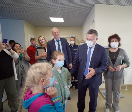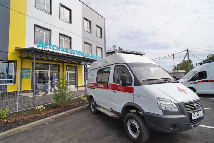 Первый объект в ходе рабочей поездки – новая детская поликлиника, строительство которой завершилось накануне. В поликлинике есть своё диагностическое отделение, кабинет компьютерной томографии, два педиатрических кабинета, кабинет врача акушера-гинеколога, прививочный и процедурный кабинеты, а также клинико-диагностическая лаборатория мощностью 100 проб в день. Строительство объекта велось в рамках государственно-частного партнёрства за счёт средств благотворительного фонда Олега Дерипаски «Вольное Дело».