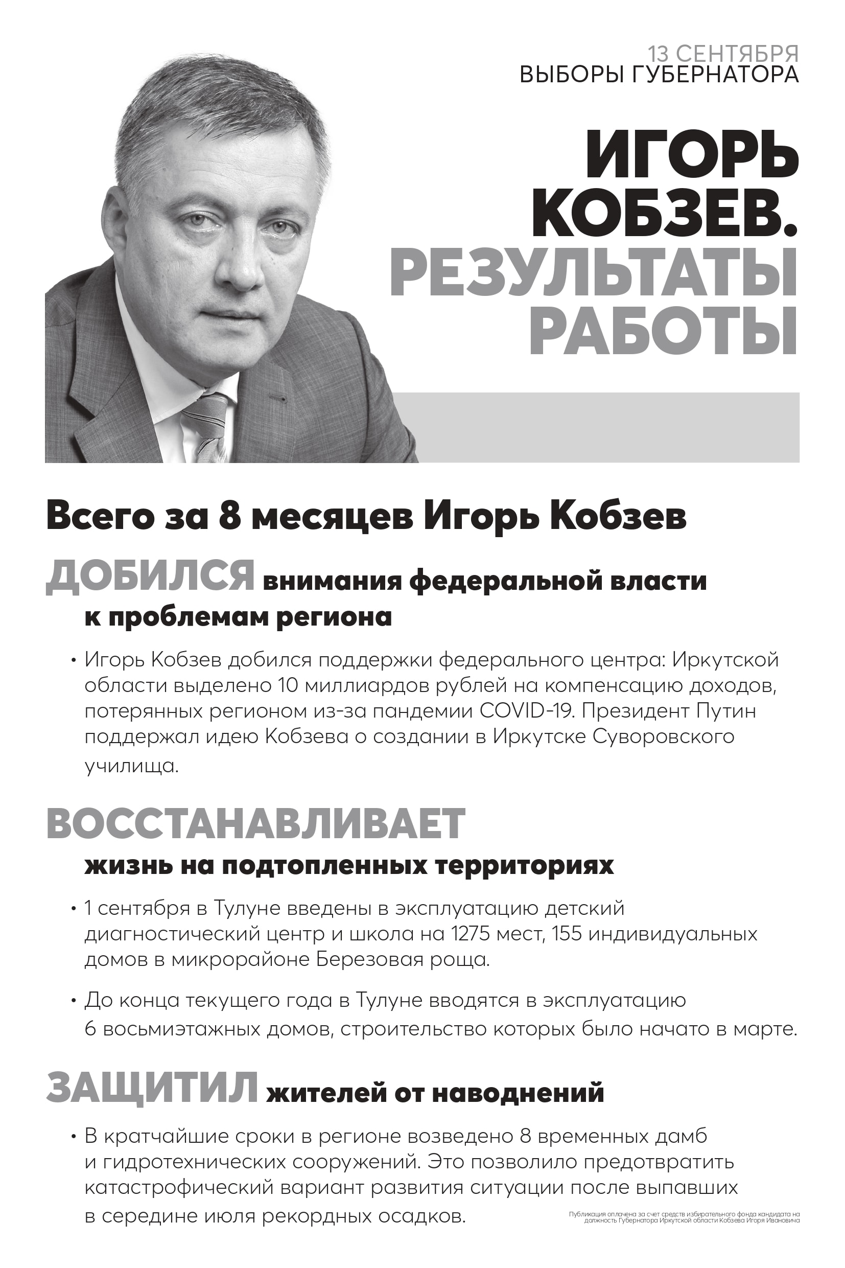 13 сентября - выборы губернатора Иркутской области