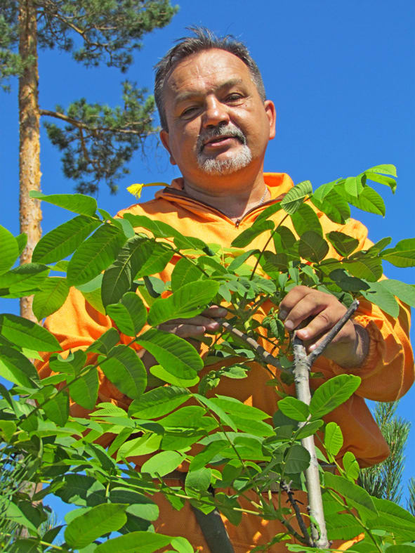 Лесовод Леонид Лукиянчук проводит эксперимент по выращиванию дубов и маньчжурских орехов в Шелеховском лесничестве