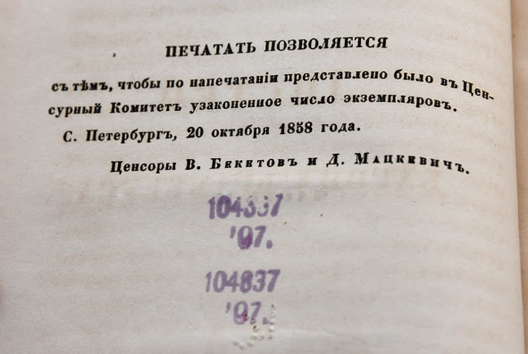 Игорь Сиротинин передал «Молчановке» 25 уникальных изданий. На книжных страницах внизу выбиты дырочками буквы LC. Это аббревиатура Библиотеки Конгресса – The Library of Congress. А на форзаце – очень красивые экслибрисы Геннадия Юдина и самой библиотеки. В числе переданных: сочинение Алексея Потехина «Бедные дворяне» (1873 год), «Новое объяснение Пушкина» А.В. Дружинина (переплетённая часть журнала «Русская словесность»), «Русский государственный кредит (1769–1906)», выпущенный Петром Мигулиным в 1887 году, «Листки Барона Брамбеуса» 1858 года. Барон Брамбеус – псевдоним известного писателя, журналиста Осипа Ивановича Сенковского. Получила «Молчановка» и книгу Н.И. Голицына «Употребляют ли евреи христианскую кровь? Замечания по поводу спора Н.И. Костомарова с профессором Д.А. Хвольсоном», книга была издана в Варшаве в 1879 году.