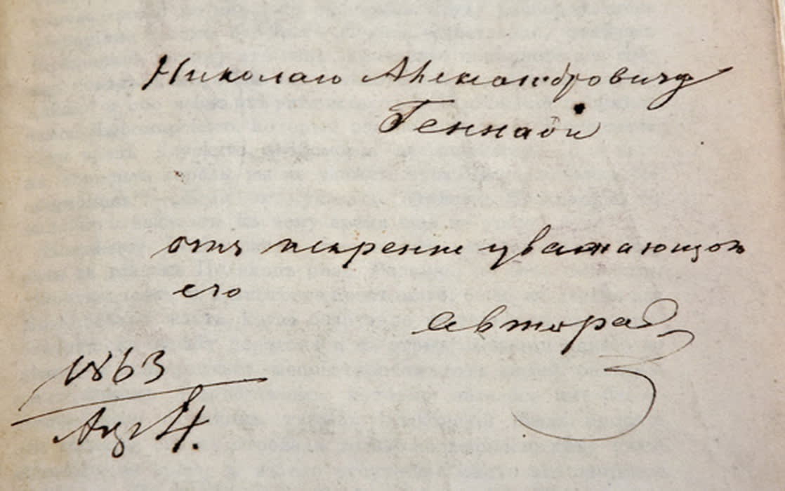 Кто же такой Николай Александрович Геннади, которому Аполлон Майков посвятил эти строки? Мы знаем известного русского библиографа, библиофила и историка русской литературы XIX века Григория Николаевича Геннади, того самого «Григория Книжника». Геннади был первым библиографом Пушкина и Гоголя, его библиотека насчитывала 15 тысяч томов. А вот его отца звали Николай Александрович Геннади, он полный тёзка того, кому посвятил дарственную надпись на книге Аполлон Майков. Николай Геннади служил переводчиком в канцелярии Министерства иностранных дел, ушёл на отдых коллежским советником. Он сам был обладателем большой и ценной библиотеки, страсть к собиранию книг перешла к сыну. Николая Геннади не стало в 1865 году, а «Смерть Луция» была написана в 1863. Вероятно, после смерти отца книга с дарственной надписью из его коллекции перешла в собрание Григория Геннади.