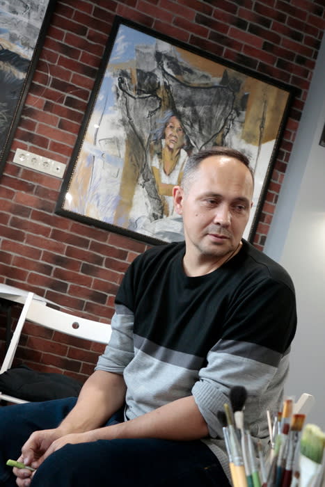 «Чем Иркутск интересен? Это город контрастов, – продолжает Сергей. – Тут вообще нет правил. Он может тебя совсем… сделать другим. Если ты приезжаешь в Питер, то примерно знаешь, в какую сторону он может тебя завернуть. А Иркутск такой город, который каждый раз разворачивает тебя по-новому. С Ленинским районом было так же, пришлось узнавать его и менять подходы. Поиск – это наше обычное состояние. «Красный квадрат» – это даже не объединение, это такая творческая площадка. Мы друг у друга что-то перенимаем, дополняем друг друга, почему так долго вместе и держимся. Сама идея «Красного квадрата» – это поиск новых форм самовыражения. Если вы вспомните ленинградское объединение «Новых художников» с Тимуром Новиковым, Георгием Гурьяновым, Евгением Козловым и другими, то в 1982 году на первой выставке Товарищества экспериментального изобразительного искусства они устроили акцию. Поставили фанерный щит с дырой, работа называлась «Ноль-объект». Маститые художники были удивлены, простой народ говорил: «Я тоже так могу!» А потом эта же группа развернулась к неоакадемизму, к классическим изображениям человеческого тела, «аполлонизму», как он у них назывался в 1990-е годы. Такой большой контраст от Малевича и Шагала к «аполлонизму», к почти классическому изображению. И они до сих пор в новом поиске, хотя Тимура Новикова давно нет, как и Георгия Гурьянова. Но, как говорит Сергей Бугаев («Африка»), началась новая эпоха, цифровая. Появились новые формы для творчества, и себя можно выразить по-новому. Искать – это самое интересное.