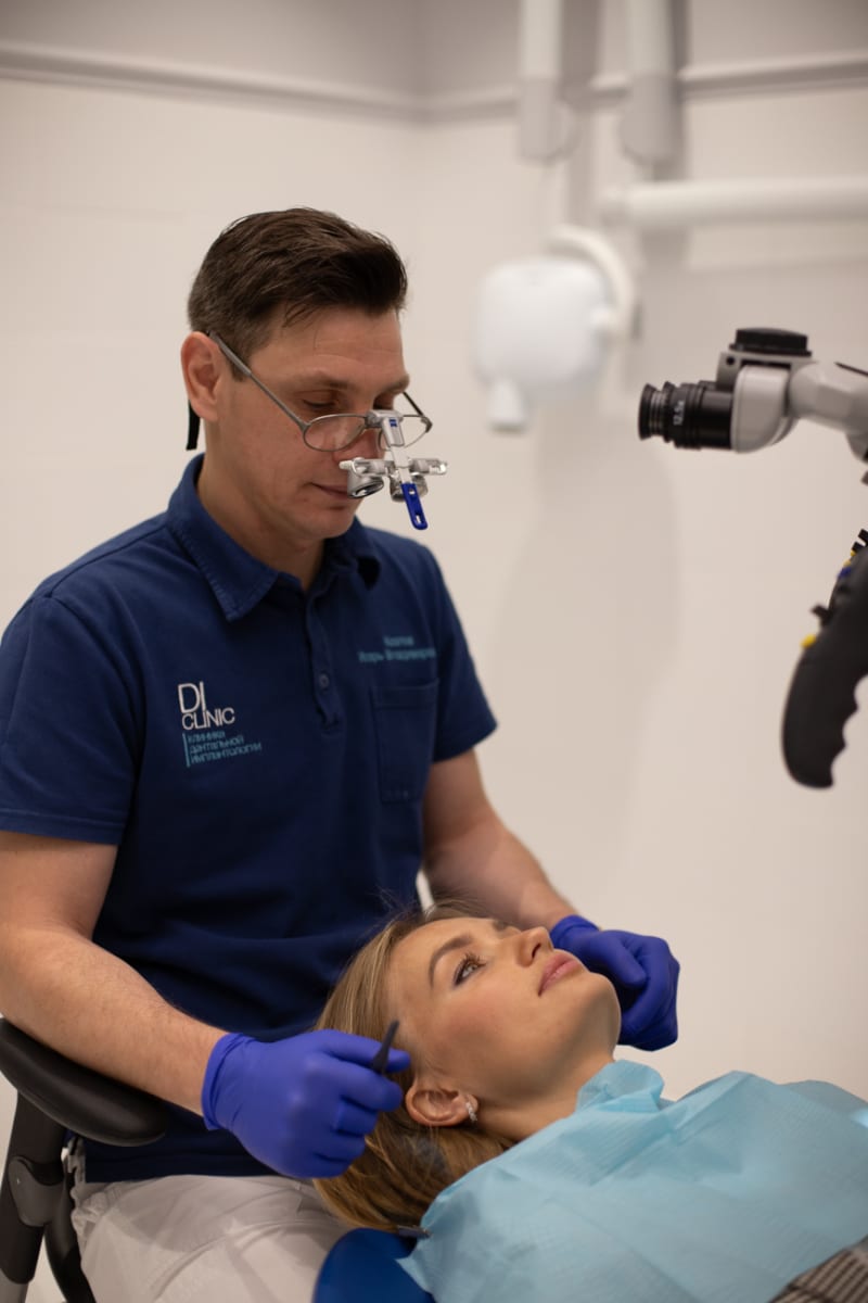 Для лечения кариеса и зубных каналов здесь используется немецкий сверхмощный дентальный микроскоп. Оптическая техника позволяет врачу работать при прочистке каналов не вслепую и наугад, а предельно точно. Рецидивов воспалительных процессов после эндодонтического лечения под микроскопом у пациентов DI-Clinic просто-напросто не бывает, и это опять-таки кажется чудом неспециалисту. Объяснение этому чуду – уникальное мастерство и хорошая техника в руках врача.