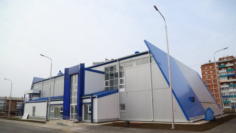 Специалисты завершают отделку фасада, ведут благоустройство территории. Все материалы закуплены и находятся на строительной площадке. Каждый день на объекте работают 280 человек, в течение недели их количество будет увеличено до 320. Также привлечены 54 бойца студенческих стройотрядов.  Объект планируется завершить к концу декабря.