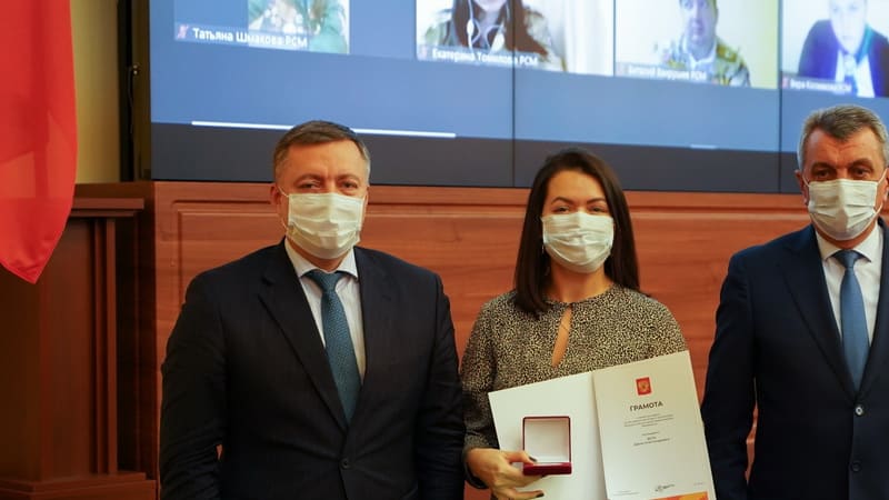 В заключение рабочего визита Сергей Меняйло и глава региона Игорь Кобзев наградили волонтёров Приангарья памятными медалями «За бескорыстный вклад в организацию Общероссийской акции #МыВместе». Вручение медалей состоялось в рамках встречи с волонтёрской общественностью региона.