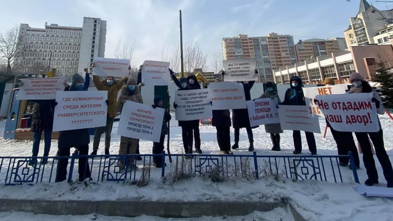 С конца ноября иркутяне обращаются к городским властям с просьбой урегулировать конфликт: они устроили забастовку, написали заявление в прокуратуру и создали петицию, в которой просят «оставить застройщику место для одного девятиэтажного дома с возвратом ему стоимости остальной площади». Петицию подписал 241 человек. Представители застройщика утверждают, что действуют законно.