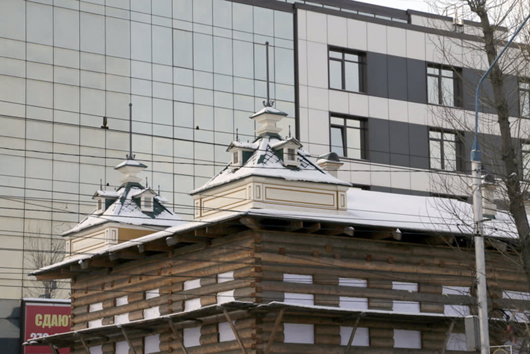 Дом-памятник мещанки Надежды Обольской стоит на пересечении улиц Энгельса и Декабрьских Событий в Иркутске. Сейчас он на реставрации, работы начались больше года назад. Стройплощадка обнесена забором, а на нём висит «этикетка» проекта – изображение обновлённого дома. Но любой внимательный горожанин может убедиться: картинка не совпадает с реальностью. В проекте у памятника нет башенок на крыше, а в жизни они есть. Более того, именно эти конструкции особенно украшают всё здание, делают его облик богаче и ярче. Почему были внесены изменения в проект, как на доме появились башенки и при чём здесь бывший жилец этого дома – об этом наша история.