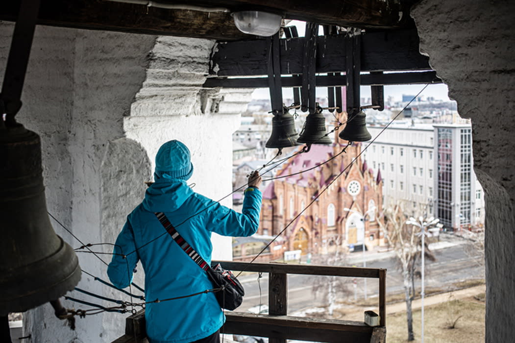 «Мне очень хочется, чтобы эта культура возродилась и ожила», – говорит Александр Ипполитов. Он берёт в правую руку верёвки от зазвонных колоколов и становится ногой поближе к педали. Через пару секунд он полностью концентрируется на процессе, а окрестности храма заливают голоса старинной звонницы. Эти звоны, возможно, слышали и гостивший у нас Антон Чехов, и адмирал Александр Колчак, чья судьба навеки связана с Иркутском.