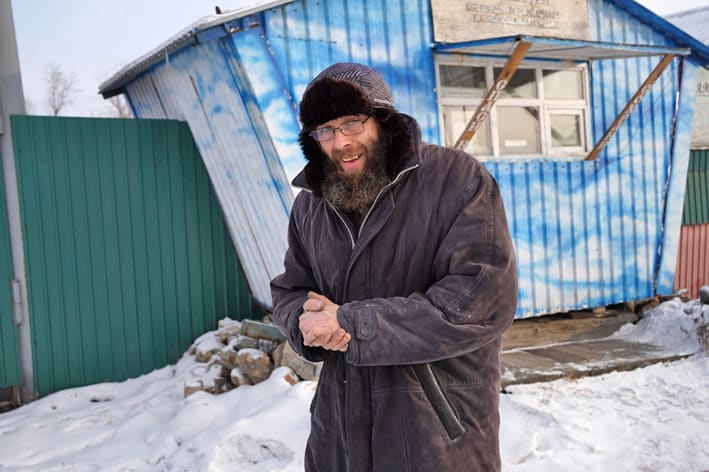 Мастерская работает каждый день без выходных. Так написано в объявлениях, которые Дар Божий наклеил по всему кварталу. Он бесплатно чинит обувь инвалидам, многодетным и малоимущим. Пенсионерам делает скидку, они платят только за материал. «Финансово обеспеченные тоже знают, что я никогда цену драть не буду», – говорит Дар. Ещё он шьёт и ремонтирует камусы и меховые шубы. «Могу такую шубу вручную сшить, что вы её снимать не захотите, – говорит Дар. – Ощущение будет, как будто тело немного располнело, и всё». Рядом с «сапожкой» во дворе стоит второй домик. Это приют для бездомных. Сейчас здесь никто не живёт, но за эту зиму в домике побывало семеро «бомжиков».