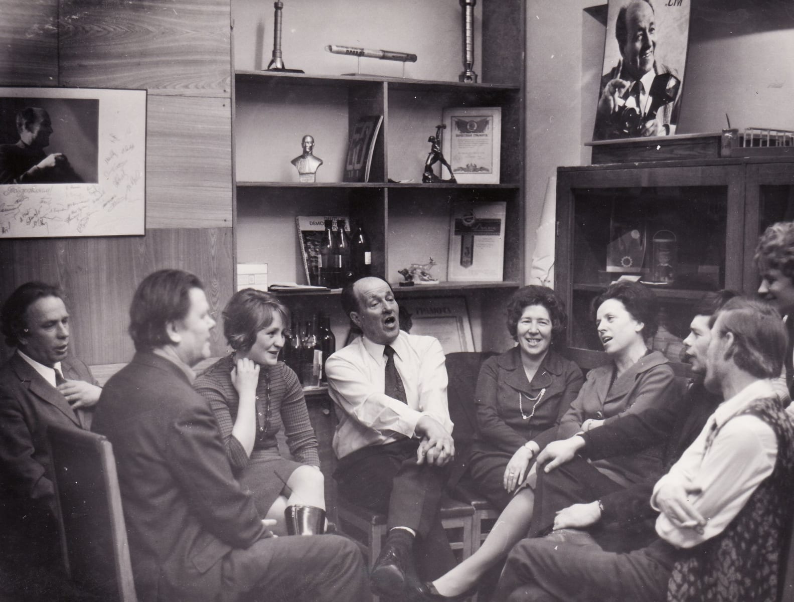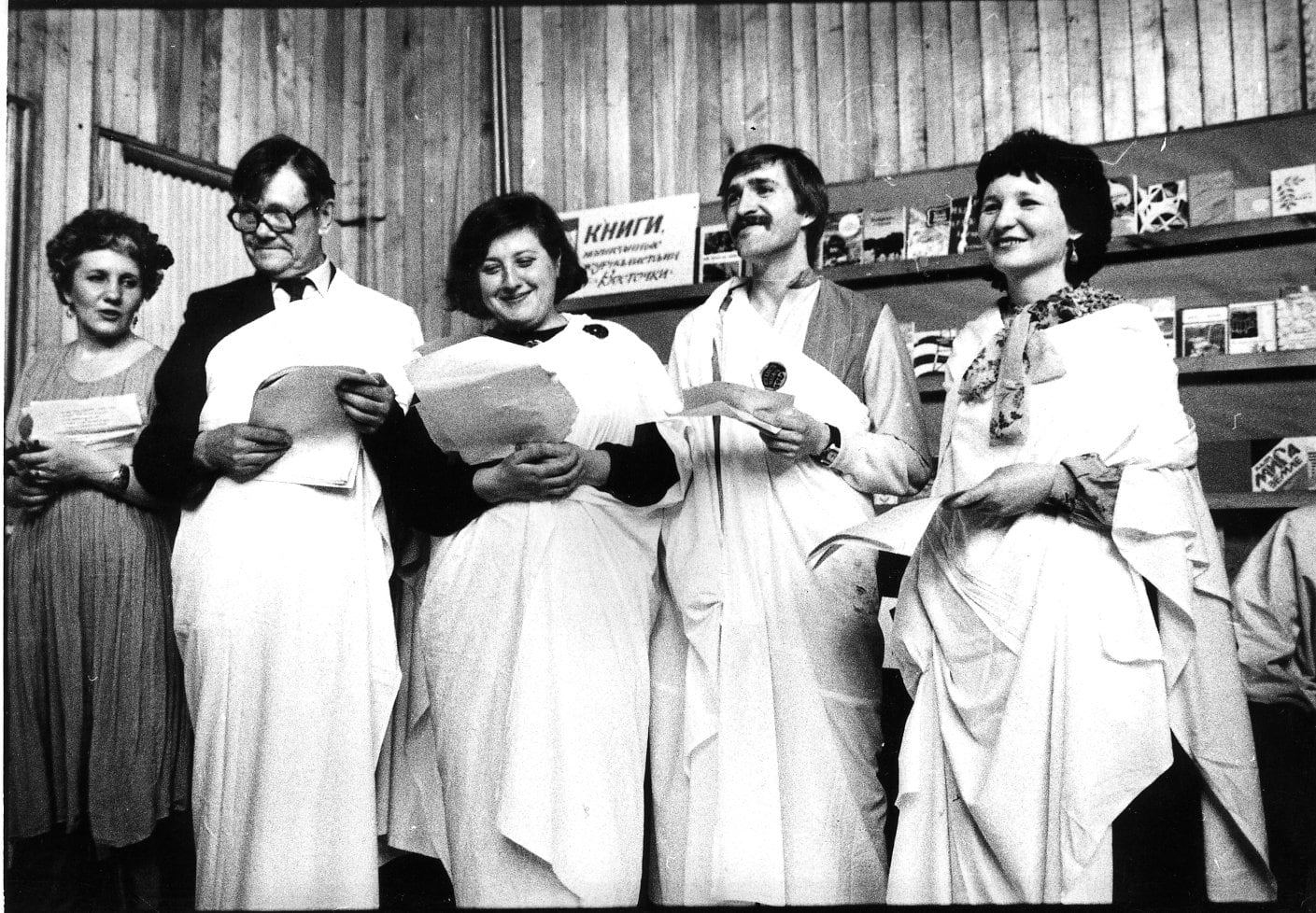 Помню все песни, которые мы пели на своих больших и малых праздниках. Даже при пустых магазинных полках столы накрывались всегда. Где-то что-то доставали, резали тоньше. Через дорогу в столовой погубленного потом авиационного училища заказывали пирог с рыбными консервами и даже торт в виде олимпийского мишки. Как же хорошо сиделось! Однажды придумали, чтобы каждый пришёл с какой-нибудь вещью, которая ему дорога. Заядлый книжник Бутаков принёс старинную книгу сибирских рассказов, Людмила Бегагоина разложила свою коллекцию редких монет, Бетти Преловская показала кофточку, которую сама связала.