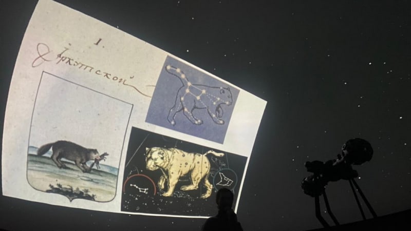 На куполе появляется проекция ночного неба с яркими звёздами, из колонок доносится мелодия бурятского горлового пения. Так начинается лекция «Одон – значит звезда», одна из четырёх, приуроченных ко Всероссийскому дню науки. На экране купола появляется фотография звёздного неба над ольхонским мысом Бурхан. Прямо над Шаман-скалой – светлая линия Млечного Пути. По просьбе ведущего зрители находят на ней Полярную звезду, указывая на самую яркую.