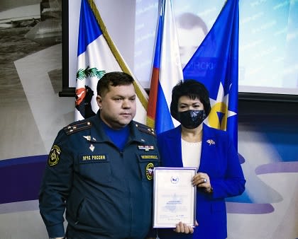 В ходе мероприятия Ольга Носенко от имени депутатов областного парламента вручила благодарности председателя Законодательного Собрания за высокие результаты в служебной деятельности начальнику Главного управления МЧС по Иркутской области полковнику внутренней службы Вячеславу Федосеенко, начальнику Центра ГИМС (управления) Главного управления МЧС России по Иркутской области Александру Козлову и главному специалисту-эксперту отдела подготовки населения Управления гражданской обороны и защиты населения Главного управления МЧС России по Иркутской области Ольге Зыковой.