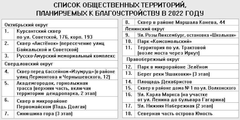 С 26 апреля жители Иркутска смогут отдать свои голоса за городские скверы и парки, которые будут благоустроены в 2022 году