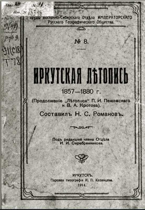 «Интересуясь стариной вообще, а города Иркутска в особенности, несколько лет тому назад я задался мыслию продолжить летопись Пежемского и Кротова, доведённую последним до конца 1856 года», – написал Нит Романов в предисловии к своей летописи более века назад. Этот неутомимый человек оказался для Иркутска чудом: не будь его, Иркутск не был бы единственным городом в Сибири, где летописная история не прерывалась более трёх веков подряд. Романов взялся искать во всех доступных источниках сведения о происходивших в городе начиная с 1857 года событиях. И довёл летопись до 1880 года. С 1914 года эта книга так и не издавалась, хотя современные иркутяне уже знакомы с последующими летописями Романова. Выпали 24 года. В год, когда исполняется 150 лет со дня рождения Нита Степановича Романова, это издание могло бы стать настоящим подарком городу и хорошей памятью летописцу.