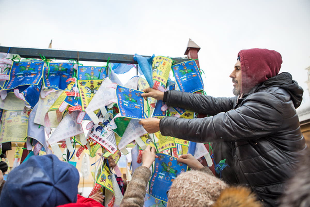 Пока одни вешают разноцветные флажки, соображая, с какой стороны правильнее, более расторопные обходят дацан трижды по часовой стрелке. Флажки продаются по 150 рублей в киоске дацана: нужно назвать свой год рождения, затем вписать своё имя прямо на флажок.