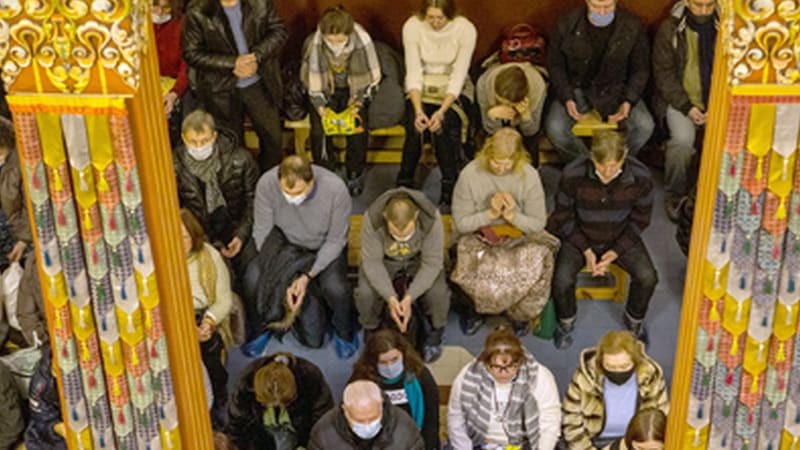 Воскресенье. В дацане идёт праздничный хурал. Опоздавшие робко заходят в зал, стараясь не поворачиваться спиной к алтарю, кто-то ждёт окончания молебна в вестибюле, надеясь поговорить с ламами. После хурала можно подняться к ним на третий этаж – за консультацией. Со стороны это напоминает приём у врача: по периметру этажа – двери кабинетов лам, у которых занимают очередь посетители. В центре зала – квадратное смотровое окно, которое позволяет увидеть дуган.