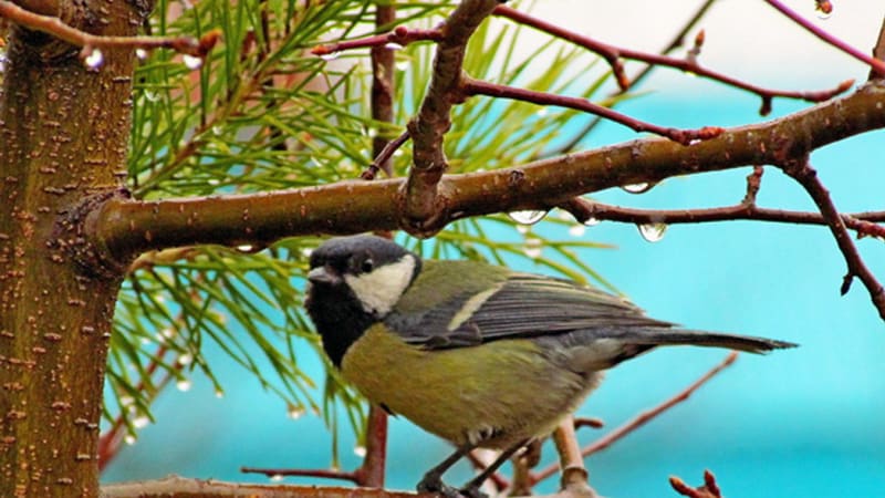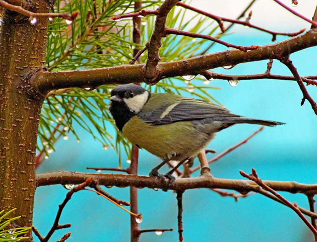 Вначале шёл весенний дождь, похожий на осенний: мелкий, долгий и нудный. Под его шорох я вчера уснул и под него же проснулся утром. За окном сплошная серость. Хотя нет, не сплошная. Ярко-жёлтое пятнышко в ветвях самовольно выросшей сосёнки – одинокая большая синица сидит. Это она только называется так – «большая». А на самом деле птичка маленькая, примерно с воробья. Зато крупнее синичек-гаичек. Крупнее симпатяжек ополовников – длиннохвостых синиц, которых не все орнитологи к настоящим синицам относят. Крупнее остальных своих «родственников» из обширного семейства синицевых. «Родня» у большой синицы по всей планете раскидана. В одной только России орнитологи 10 видов синиц насчитывают. Желтогрудая с чёрным «галстуком» превосходит их всех размерами, потому и получила право называться большой.