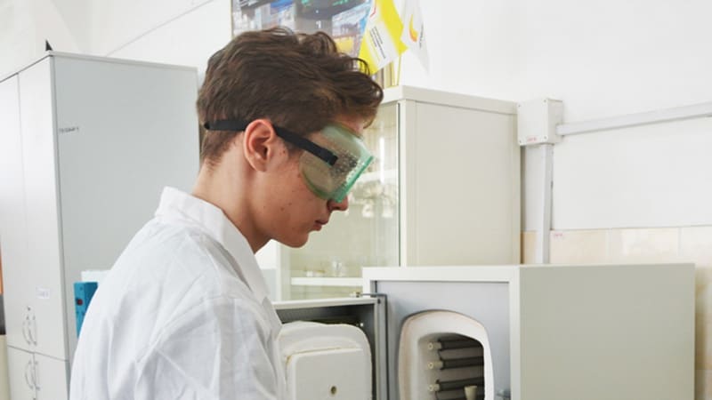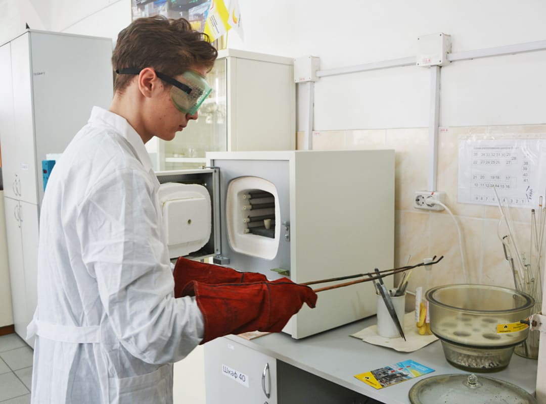 Второкурсник Никита Алимов осторожно извлекает длинными щипцами тигель из муфельной печи. Высокая температура не прощает суеты, поэтому техника безопасности соблюдается неукоснительно, а все движения неторопливы и отработаны до автоматизма. Обращаешь внимание на то, что даже в разговоре с журналистами говорит Никита небыстро и чётко. «Новое на то и новое: больше возможностей и опций вроде плавного регулирования температуры, – рассказывает он. – Чувствуется, что появился большой интерес что-то новое изучать, особенно у студентов, которые подобное оборудование видят первый раз».