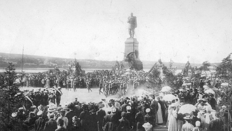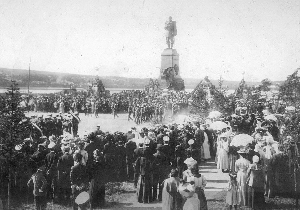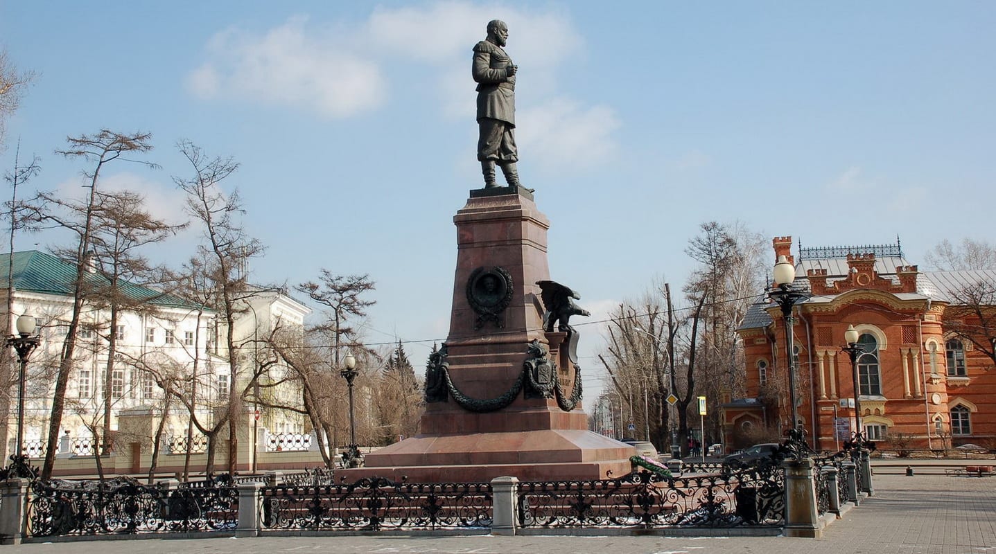 И тут надо сразу сказать, что место, где тогда поднялся ввысь пирамидальный шпиль, не простое, а царское. Ещё на старте прошлого века – 30 августа 1908 года – там, откуда берёт начало главная улица Иркутска и хорошо виден противоположный берег, по которому пролегла Транссибирская железнодорожная магистраль, был открыт памятник инициатору её строительства – императору Александру III. Причём отлитую из бронзы массивную фигуру самодержца высотой пять метров водрузили на ещё больших размеров постамент из полированного розового гранита, специально привезённого из далёкой Финляндии. Автор скульптуры – Роберт Бах, создатель памятника Александру Пушкину в саду Царскосельского лицея под Санкт-Петербургом, парка и памятника композитору Михаилу Глинке в Москве.