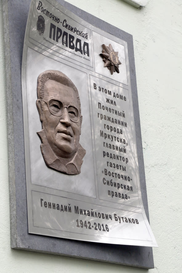 В этом июле исполнится пять лет, как нет на свете редактора «Восточки» Геннадия Михайловича Бутакова, который руководил областной газетой на самом острие переменчивой эпохи – с 1986-го по 2004 год. И вот событие в память об этом необычном и многогранном человеке: открытие 31 мая мемориальной доски на доме, где много лет он жил со своей большой семьёй. Совсем недавно здесь собирались журналисты и друзья «Восточно-Сибирской правды» по такому же поводу, когда увековечивали память о редакторе-фронтовике Елене Ивановне Яковлевой. Так что это по-настоящему редакторский дом в самом центре Иркутска, и взгляд не пропустит лаконичные слова в камне о замечательных журналистах с корневой сибирской основой.