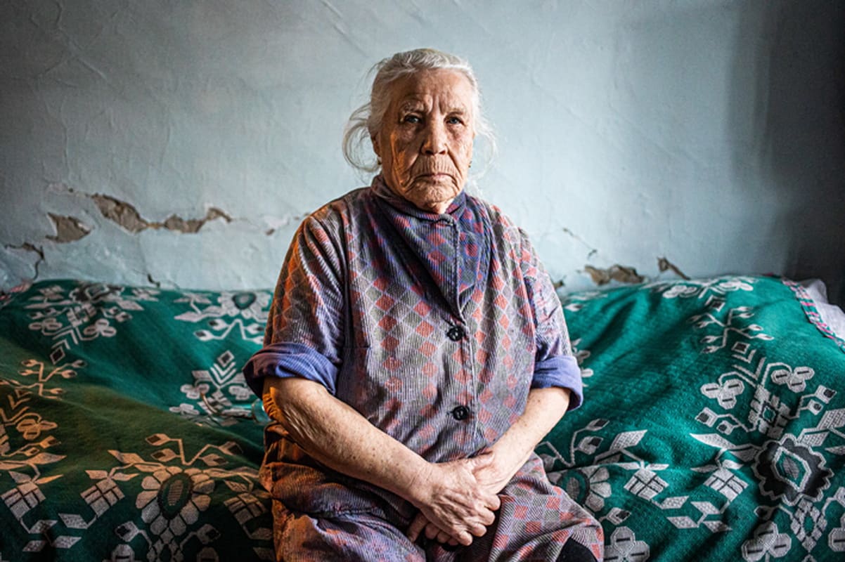 «Квартира хорошая, раньше уютно было», – говорит Салима, приглашая внутрь своего жилища. Она миниатюрная, ростом не выше 150 сантиметров. На ней белая футболка с коротким рукавом и вырезом под горло, сарафан стального цвета. Дома у неё тепло, и она ходит без кофты. Седые волосы собраны сзади в недлинный хвост. Здесь её все называют баба Соня. Она родилась в деревне Кызыл-Байрак в Татарстане, около Набережных Челнов. По-русски до сих пор говорит с акцентом и часто переспрашивает: в последние годы стала плохо слышать.