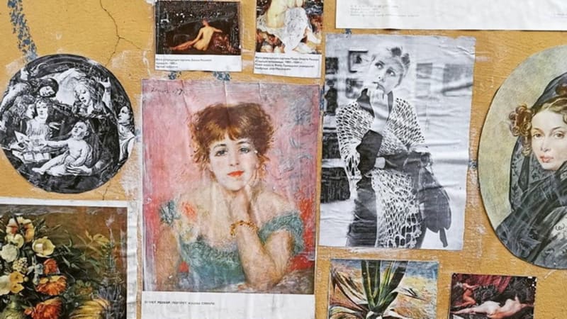 А потом это переросло в другой проект. У Екатерины хранилось много репродукций картин, вырезок из журналов, иллюстраций. И она начала создавать мини-галереи по городу. «Я делала это не на чистых стенах, а там, где стены в таком состоянии, что уже не жалко что-то наклеить, – говорит она. – Либо на стене были надписи, тэги, и я клеила поверх этих тэгов. У меня была переписка с авторами этих тэгов. «Девушка, девушка, вы играете не в ту игру, вам нельзя такого делать, тэги нужно уважать!» – писали мне авторы. С этим были разные истории, конечно, эпичные. И вот интересно это взаимодействие уличного искусства, которое малое количество людей признаёт за искусство, а скорее за что-то, что портит портрет города, и репродукций картин Репина, Айвазовского, Коровина. Было очень классно, когда я клеила наброски, все они исчезли практически в течение месяца. Их либо заклеили рекламными объявлениями, либо дальше стирали. Но какие-то работы остались, хотя их очень легко содрать, там клей ПВА, люди их фотографируют, присылают «Спасибо», постят. В общем, это большой отклик находит, мне радостно».