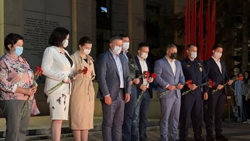 Митинг, посвященный Всероссийской акции «Огненные картины войны», приуроченный к 80-летию нападения фашистской Германии на Советский Союз, прошёл в Иркутске 21 июня в 22 часа. Глава региона Игорь Кобзев, депутаты Законодательного Собрания Иркутской области Ирина Синцова и Артем Лобков, мэр Иркутска Руслан Болотов, представители молодежной общественной организации «Волонтёры Победы» и жители Приангарья возложили цветы к мемориалу «Вечный огонь».