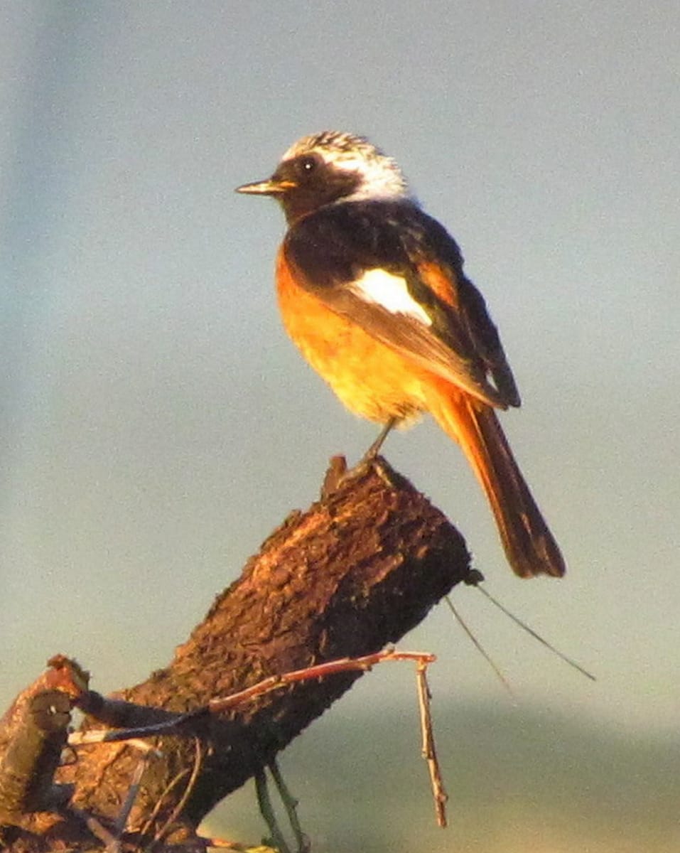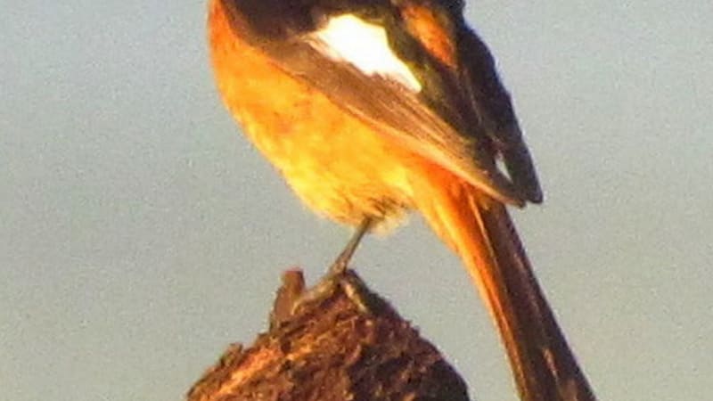 Наш дачный участок считает своим как раз сибирский «горихвост». Судя по богатству его звуковой палитры, уже немолодой, опытный импровизатор. Визуально мы с ним знакомы несколько лет, но к близкому контакту, как поползни или большие синицы, к примеру, он явно не расположен. При моём появлении не паникует и даже не особенно тревожится, но панибратства не терпит. Личную дистанцию держит жёстко. На расстояние качественного фотоснимка не подпускает. У меня есть и его прошлогодние снимки, и позапрошлогодние, но – издалека. А нынче в один из июньских вечеров я увидел его сидящим на куче срезанных мною веток и печально глядящим на заходящее солнце. Фотоаппарат в руках. Далеко, но подойти не решился. Улетит. Кадр, второй… И без того ярко-оранжевая грудь моего «горихвоста», подсвеченная бьющими в упор лучами коснувшегося земли солнца, приобрела и вовсе фантастический, неестественный оттенок. Ещё несколько кадров. Встаю с колена, чтобы теперь попытаться подойти ближе. «Горихвост» равнодушно переводит взгляд на меня и нехотя, как мне показалось, улетает. Как-то даже чуть-чуть неловко стало. Ощущение – будто я его прогнал. Вернётся ли? Вдруг обиделся? Нет, следующим вечером горихвостка-самец вновь сидел на том же сучке. Я больше не стал приставать к нему с фотоаппаратом.