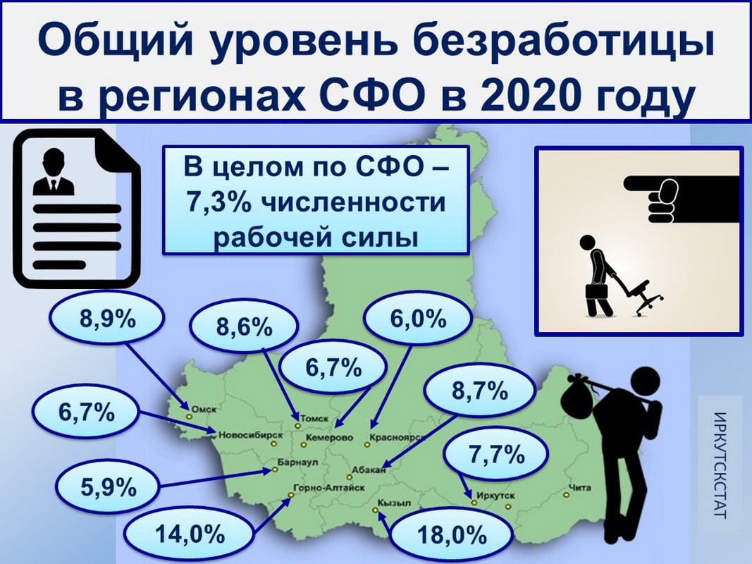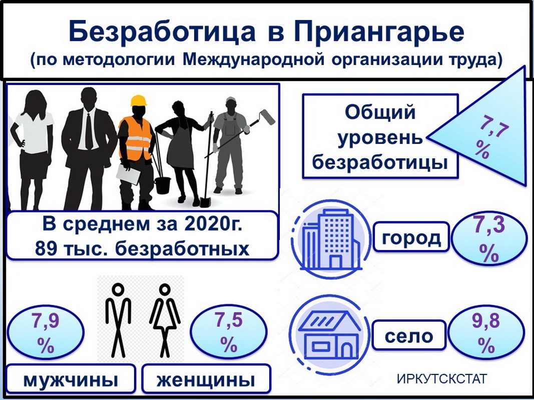 За 20 лет численность рабочей силы в Иркутской области сократилась почти на 200 тысяч человек (на 15%). Рабочая сила состоит из двух неравных групп – занятых и безработных. Это не только лица в трудоспособном возрасте. Из числа жителей Приангарья, перешагнувших эту черту, каждый пятый продолжает трудиться, а 4,5% ищут работу и готовы трудиться, потому считаются безработными. Такие экономически активные пенсионеры тоже представляют собой рабочую силу.