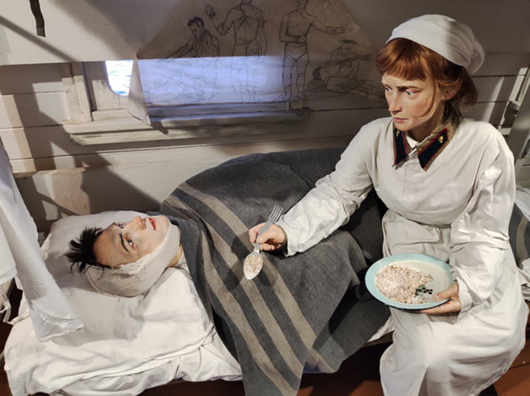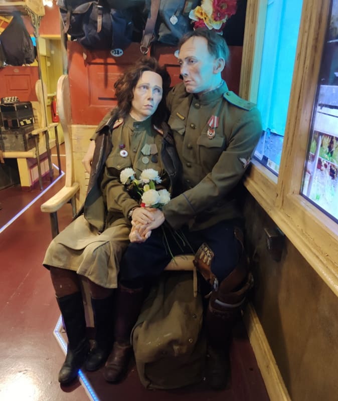 Но самое важное в поезде – это фигуры людей того времени, выполненные специалистами творческой мастерской «Невский баталист». «Практически у каждого персонажа есть прототип, – рассказал администратор проекта. – Перед созданием экспозиции была проведена большая подготовительная работа: изучены архивные материалы, включая 150 часов архивных видеозаписей, проведены консультации с историками и свидетелями событий Великой Отечественной войны».