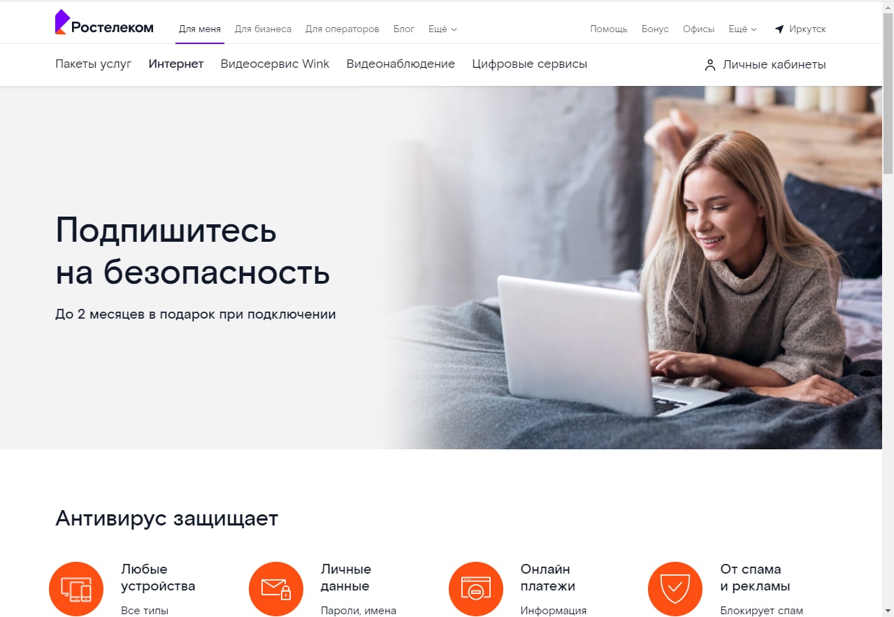 Только за июль этого года свыше двух тысяч абонентов-физических лиц Иркутской области оформили подписку «Антивирус» от «Ростелекома». Общее количество абонентов, защитивших личные данные и информацию о банковских картах от киберпреступников, достигло практически 26 тысяч.