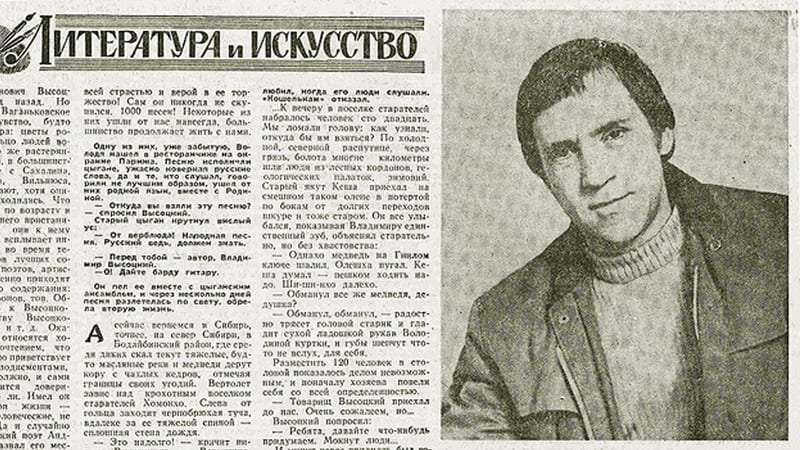 Но тут, как на беду, в редакции появился коллега Леонид Мончинский, о котором было известно, что он уже не первый год работает в одной из промышляющих золото старательских артелей. В руках он держал фотографию и несколько страниц плотного машинописного текста «про Володю Высоцкого, который когда-то приезжал в Иркутск и уже год как умер», а на его лице ясно выражалось желание увидеть это напечатанным в газете. Правда, в моём кабинете в тот момент находился собкор центральной газеты «Советская культура» Владимир Ивашковский, и он упросил Леонида дать ему этот материал. Однако прошла неделя или чуть больше, и Мончинский снова пришёл в «Восточку» с некоторым смущением на лице («В «Культуре» не взяли») и просьбой: