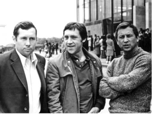 И мне кажется, что наиболее успешным бенефициаром, то есть выгодоприобретателем, от съемок и в целом посещения Высоцким Иркутска и области оказался Мончинский. Смотрите, не успел гость сойти с трапа самолёта, как началось фотографирование его в разных вариантах с хозяевами. Это продолжалось и на берегу Байкала, потом на ленских приисках и так далее. И везде Леонид рядом или почти рядом с Высоцким. А в заключительный день – 21 июня – снова иркутский аэропорт, прощальные кадры семидневной фотосессии. И вот оно – яркое свидетельство: рука на плече, они расстаются друзьями!