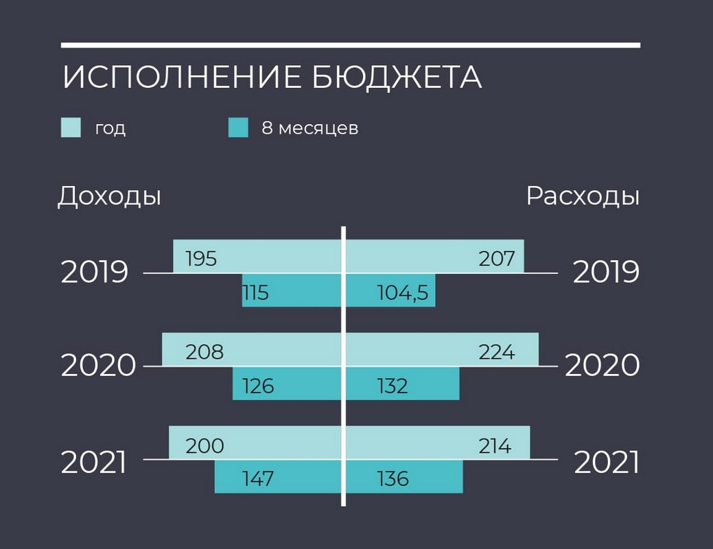 Но нельзя сказать, что всё безоблачно. Есть несколько настораживающих тенденций. У нас в 2019 году доходы были 195 миллиардов, в 2020-м – 208 миллиардов рублей. На дворе 2021 год, а доходы – 200 миллиардов, это на 5 миллиардов больше, чем в 2019-м, и на 8 миллиардов меньше, чем в 2020 году. Хотя расходные обязательства увеличились в ковидный период. Это во-первых.